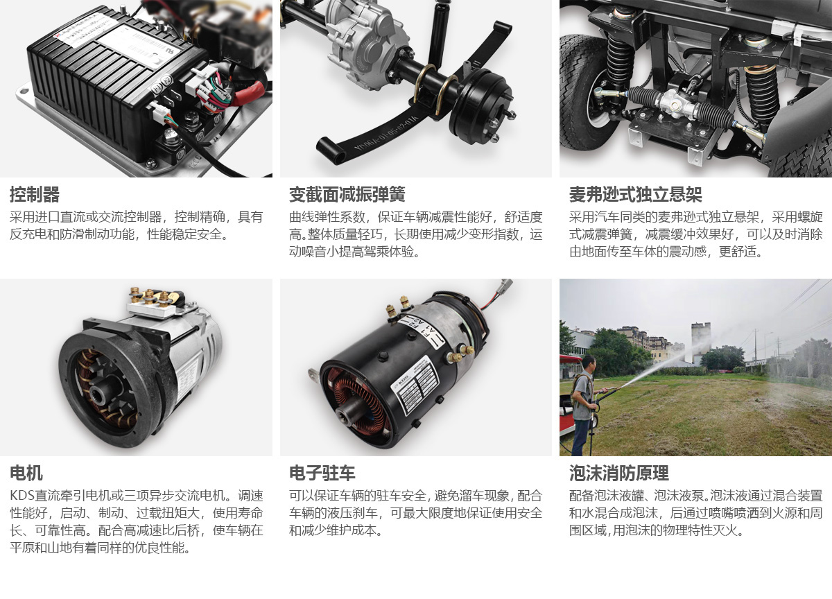 敞開式微型電動泡沫消防車配備新型高效的泡沫噴霧滅火系統(tǒng),