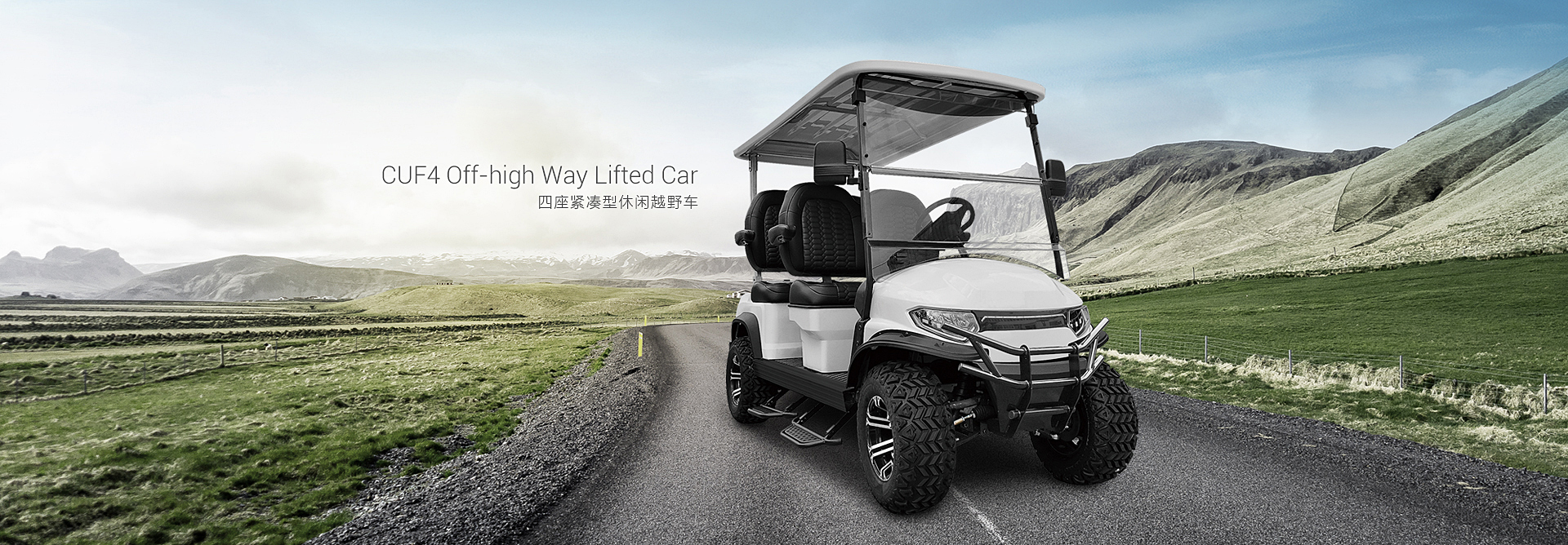 CUF4緊湊型休閑越野車,整車傳承GREENMAN 技術優勢并有眾多創新。縮短的軸距、雙A字臂前懸結構、三角后托臂減震機構,使得車輛更加舒適,通過性更高。鋁合金底盤堅固耐用,使用壽命長,高端迎賓踏板和迎賓燈配置體現尊貴品質。大功率電機和電控系統保證車輛具有優異的動力性。后頂棚支架折彎設計,符合外觀曲線美。后儲物盒方便用戶儲存物品。